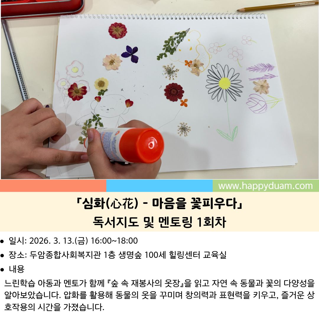 | [°æ°è¼± Áö´É¾Æµ¿ »çȸÀûÀÀ·Â Çâ»ó Áö¿ø»ç¾÷] 3¿ù ¡¸½ÉÈ(ãýü£) - ¸¶À½À» ²ÉÇÇ¿ì´Ù¡¹È°µ¿ | |||